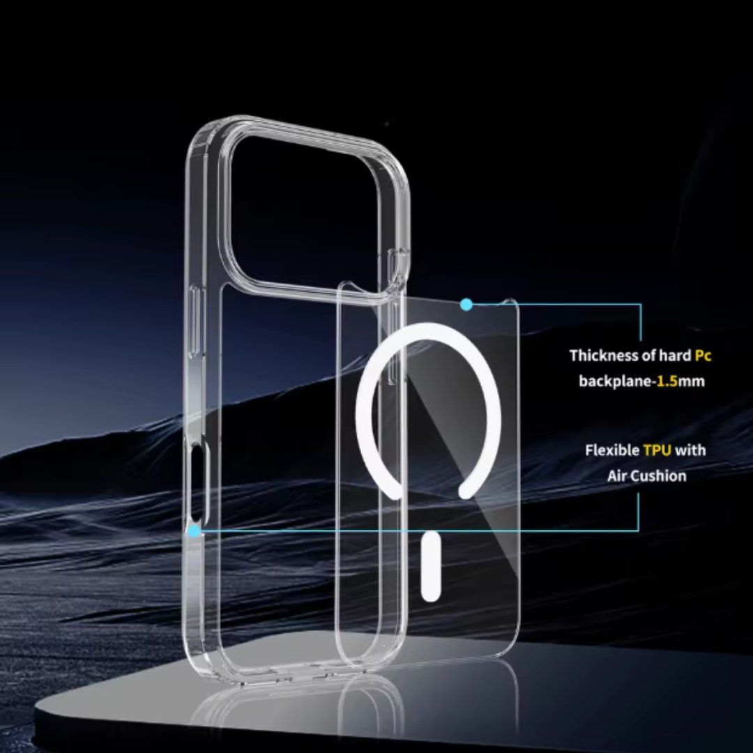Magnetna prozirna maskica odlična je kombinacija fleksibilnosti, zaštite i praktičnog dizajna. Izrađena je od laganog, ali izdržljivog TPU materijala koji učinkovito štiti tvoj telefon od ogrebotina i manjih oštećenja. Zahvaljujući ugrađenom magnetskom prstenu kompatibilnom s magnetnim dodacima, omogućeno je jednostavno bežično punjenje bez potrebe skidanja maskice.